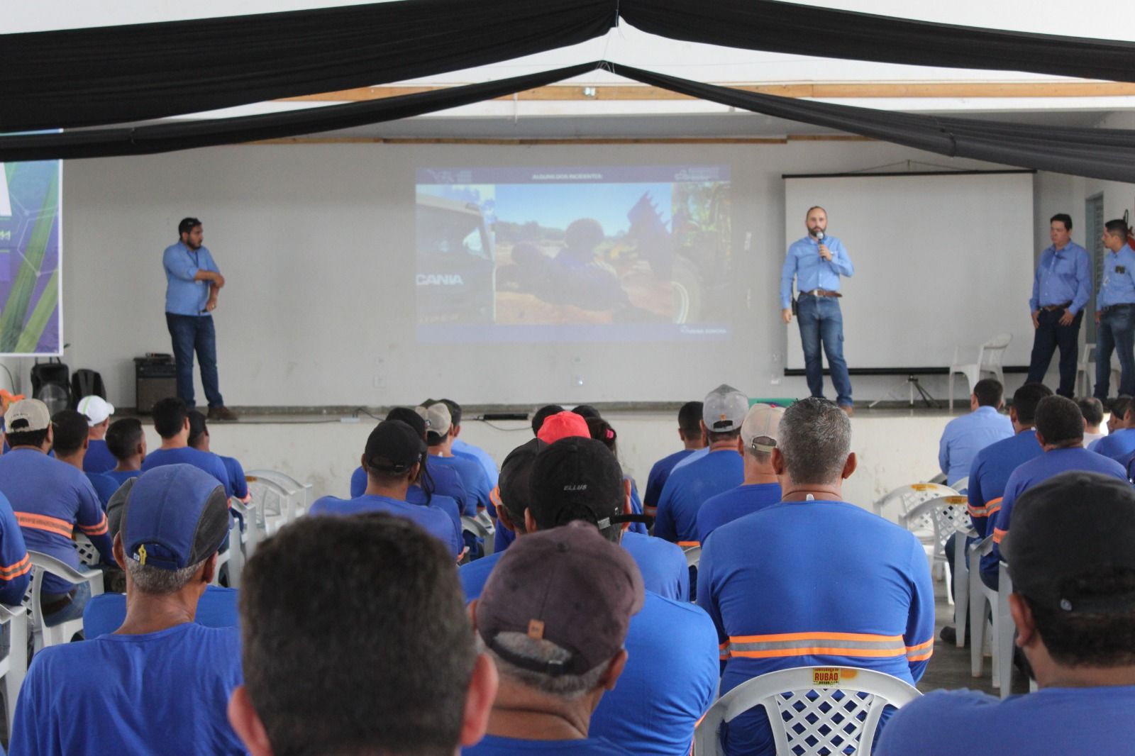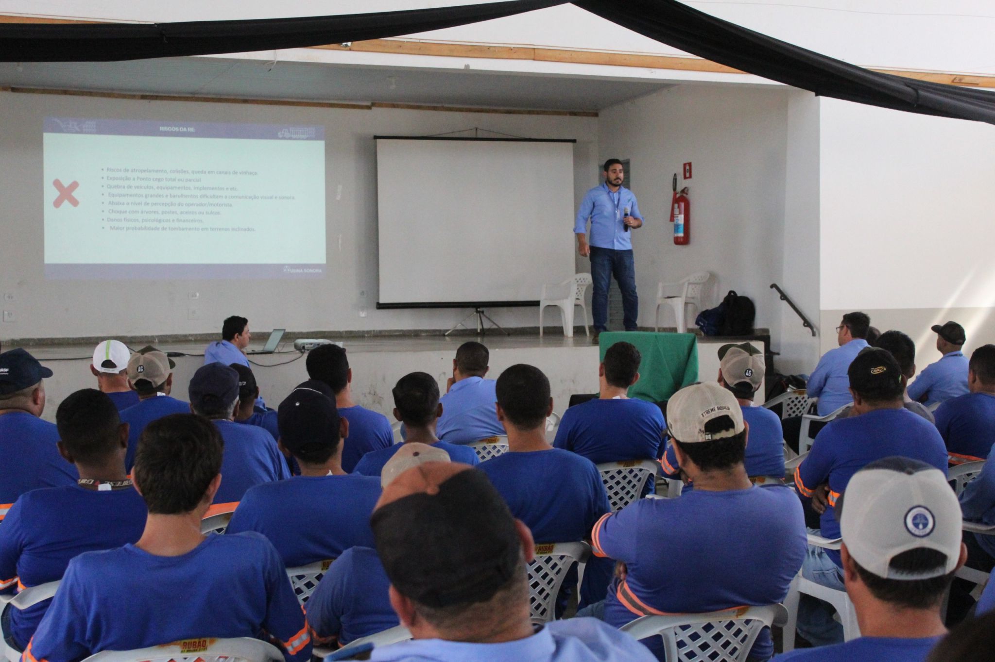 Ao longo do treinamento, foram trabalhados temas fundamentais relacionados à segurança, percepção e gestão de riscos, boas práticas operacionais, prevenção de incidentes, qualidade nos processos, uso adequado de equipamentos e cuidados com o solo, a planta e o canavial.